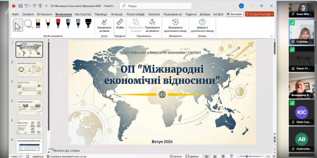 21 січня 2026 року на кафедрі міжнародної економіки та міжнародних економічних відносин відбулося розширене засідання, присвячене обговоренню та удосконаленню освітньо-професійної програми «Міжнародні економічні відносини» першого (бакалаврського) рівня вищої освіти за спеціальністю C1 Економіка та міжнародні економічні відносини галузі знань C Соціальні науки, журналістика, інформація та міжнародні відносини (освітня кваліфікація — бакалавр міжнародних економічних відносин). Ключовою метою зустрічі стало узгодження змісту та результатів навчання з актуальними запитами ринку праці, очікуваннями стейкхолдерів і потребами здобувачів вищої освіти, а також підвищення практикоорієнтованості підготовки майбутніх фахівців.