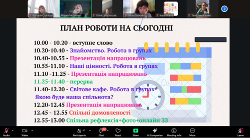 Завершилася подія підведенням підсумків, формуванням спільних рішень та традиційним онлайн-фото, що символізувало згуртованість, взаємопідтримку та мотивацію до подальших кроків.